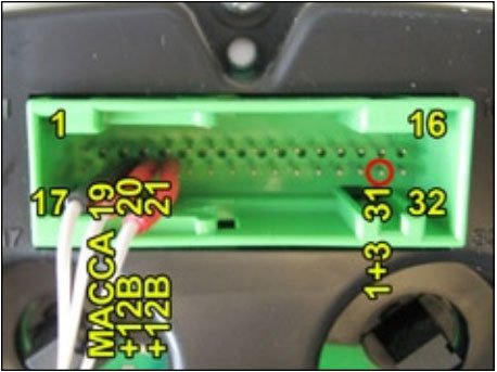 2 пин - Клема "15", 20 пин - Клема "30", 4 пин - Общий