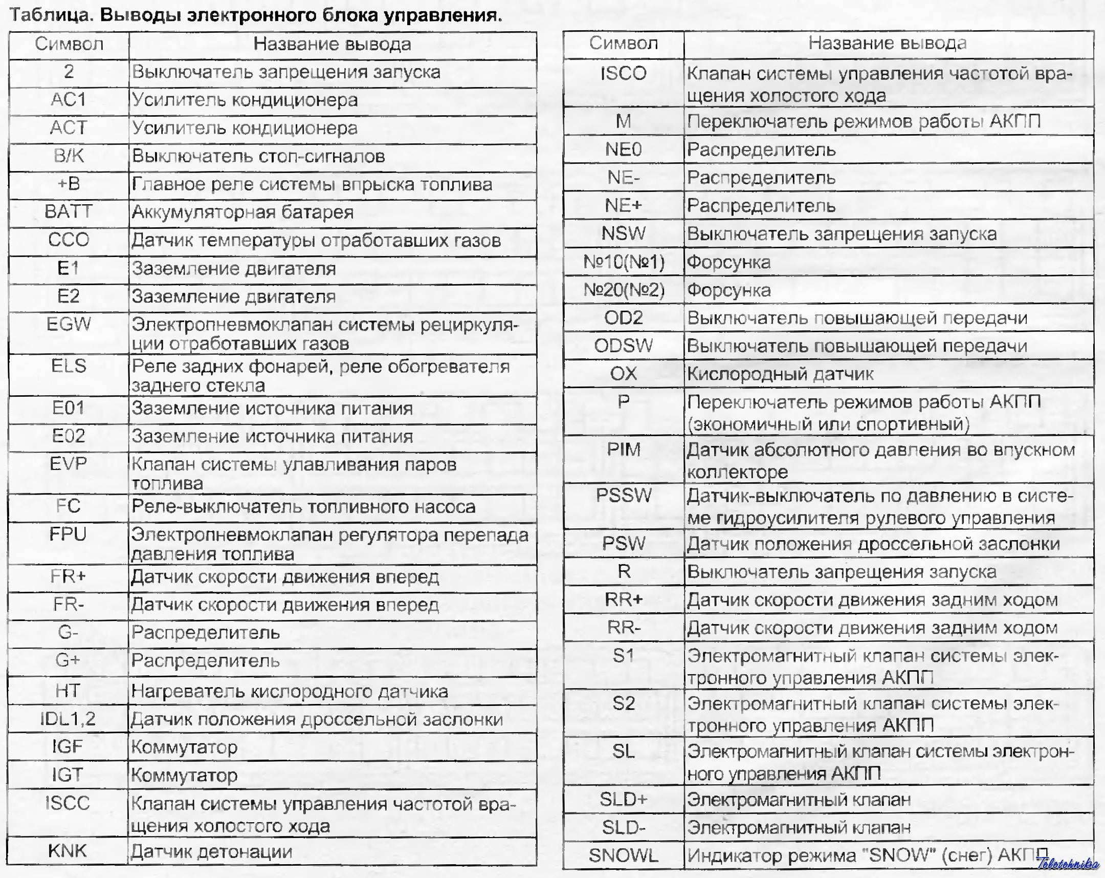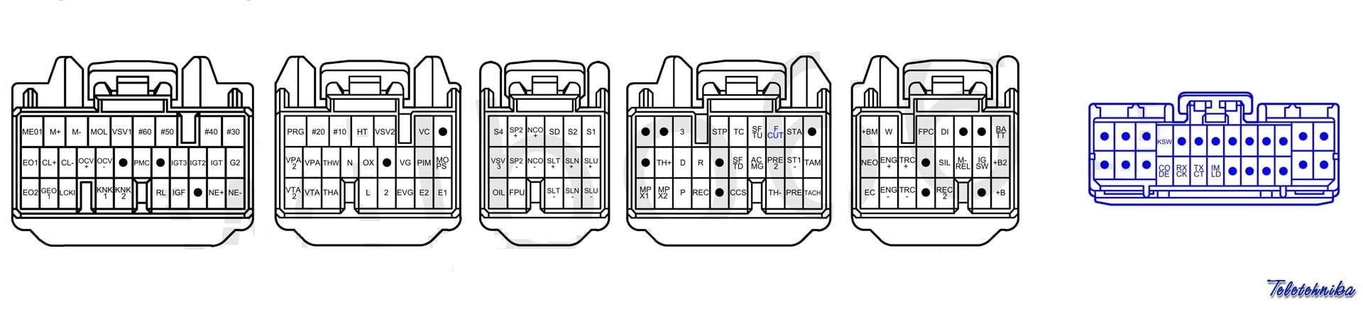 В связи с частыми выходами из строя штатного контроллера двигателя на 1KZ-TE (89661-60250) решил собрать в одном месте все распиновки ECT, которые смог найти и проверить. Проверять старался очень тщательно, но 100% гарантию не дам, т.к. многообразие контроллеров на 1KZ-TE впечатляет.