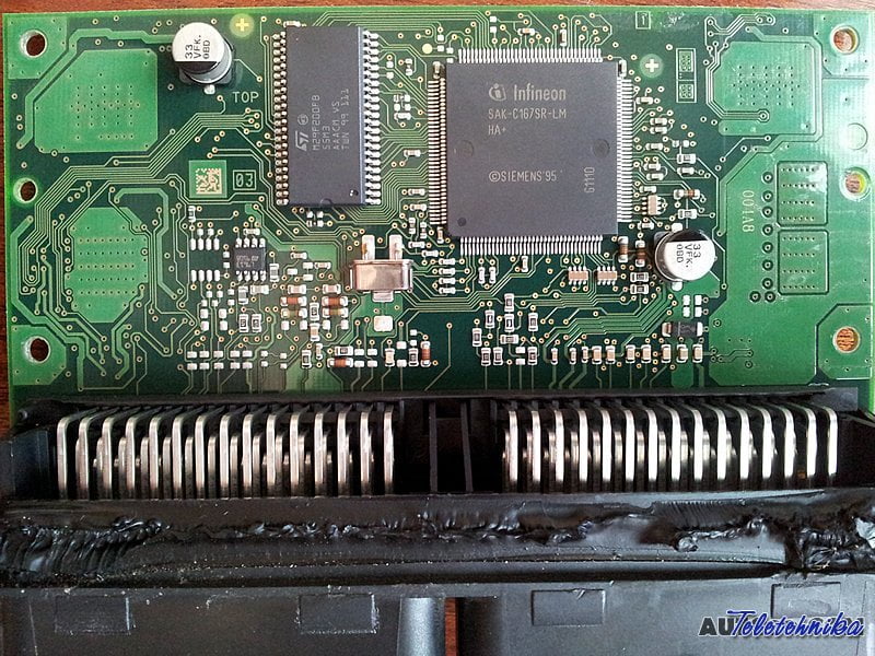 Коллекция разъёмов блоков ЭБУ для ремонта и подключения в мастерской на столе. Указаны контакты питания, общего провода, контакты бензонасоса и прочих необходимых приборов