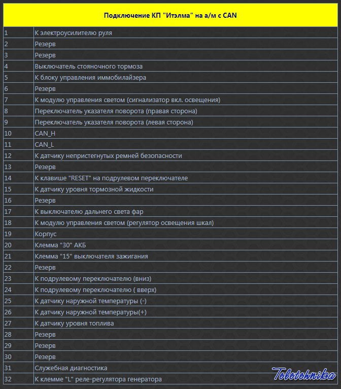 2 пин - Клема "15", 20 пин - Клема "30", 4 пин - Общий