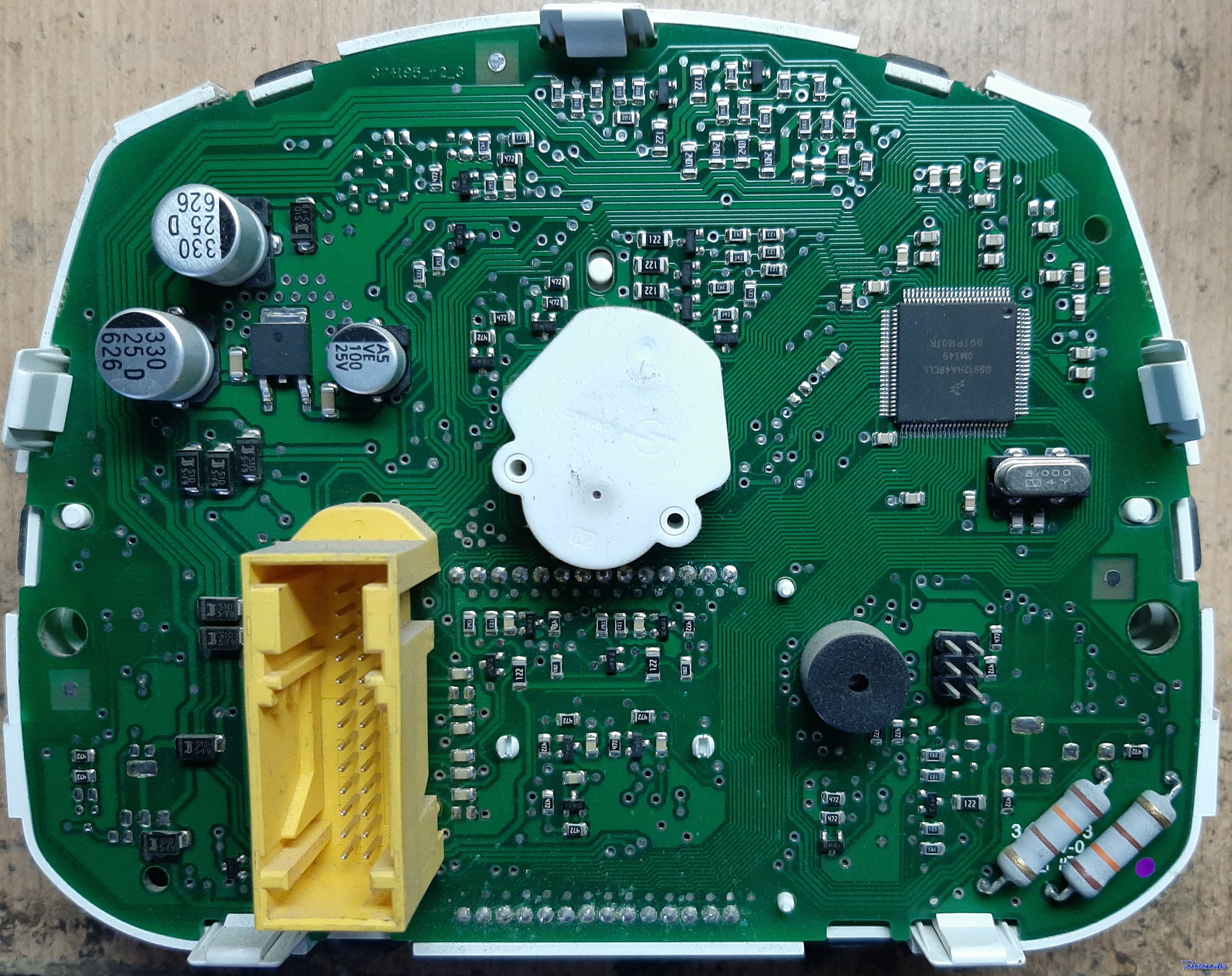 Прибор выполнен на контроллере S9S12HY48CLL. Мотается с охеренной скорость по сигнальному проводу.