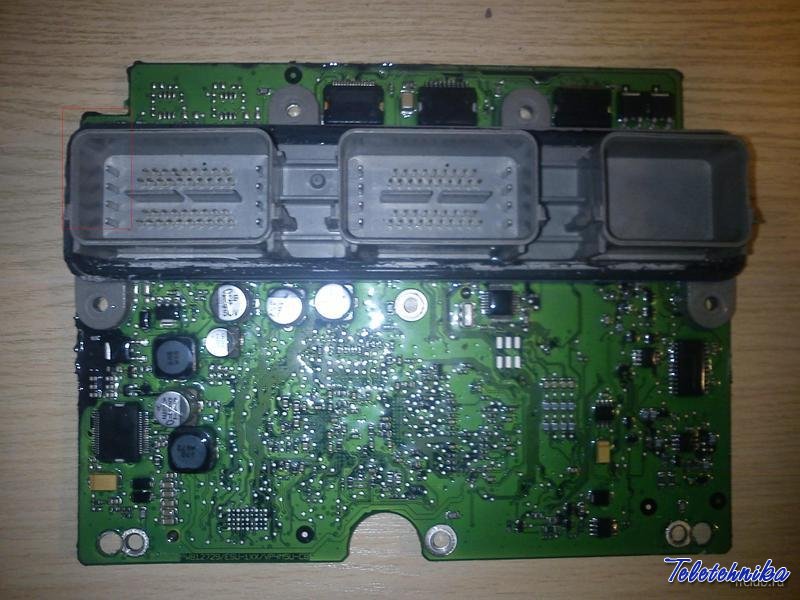 Коллекция разъёмов блоков ЭБУ для ремонта и подключения в мастерской на столе. Указаны контакты питания, общего провода, контакты бензонасоса и прочих необходимых приборов